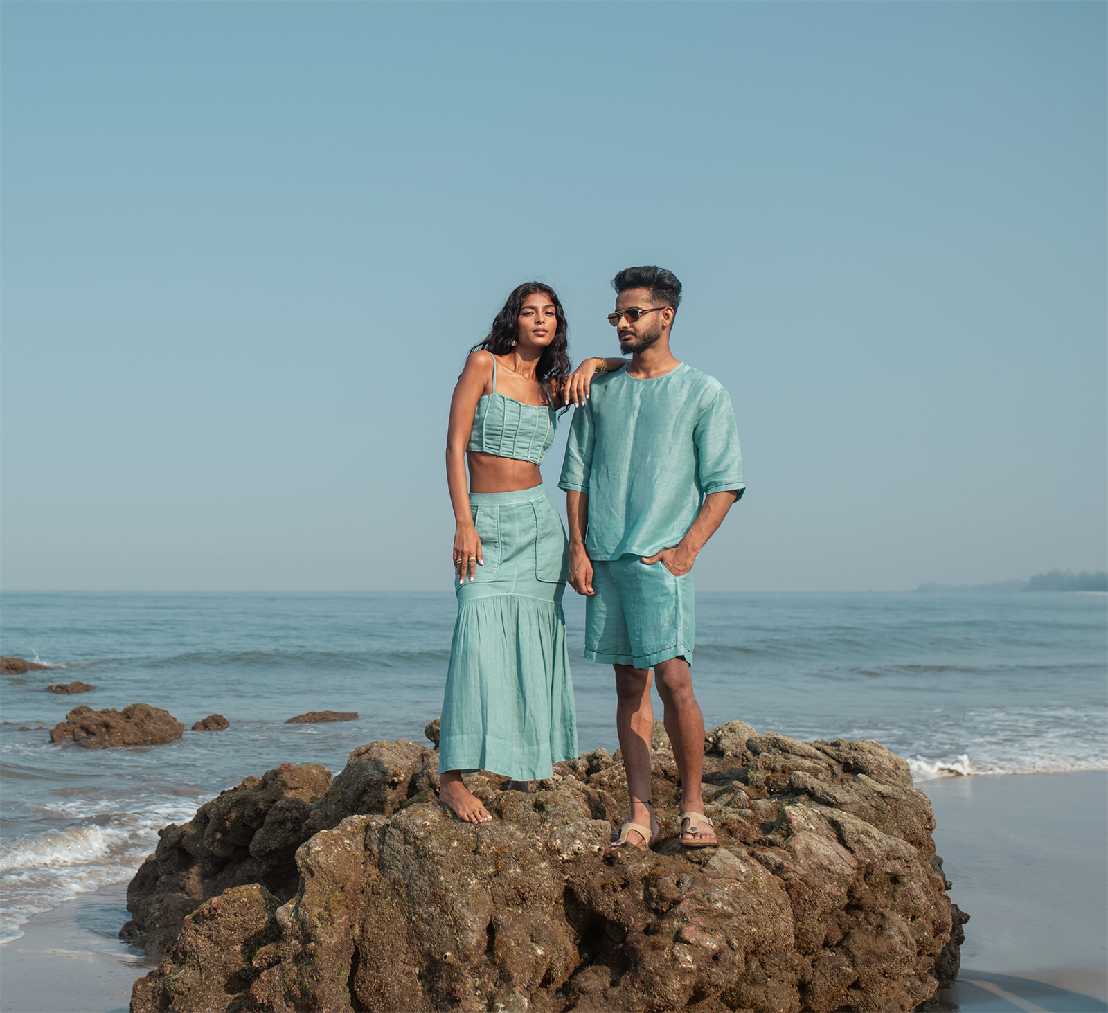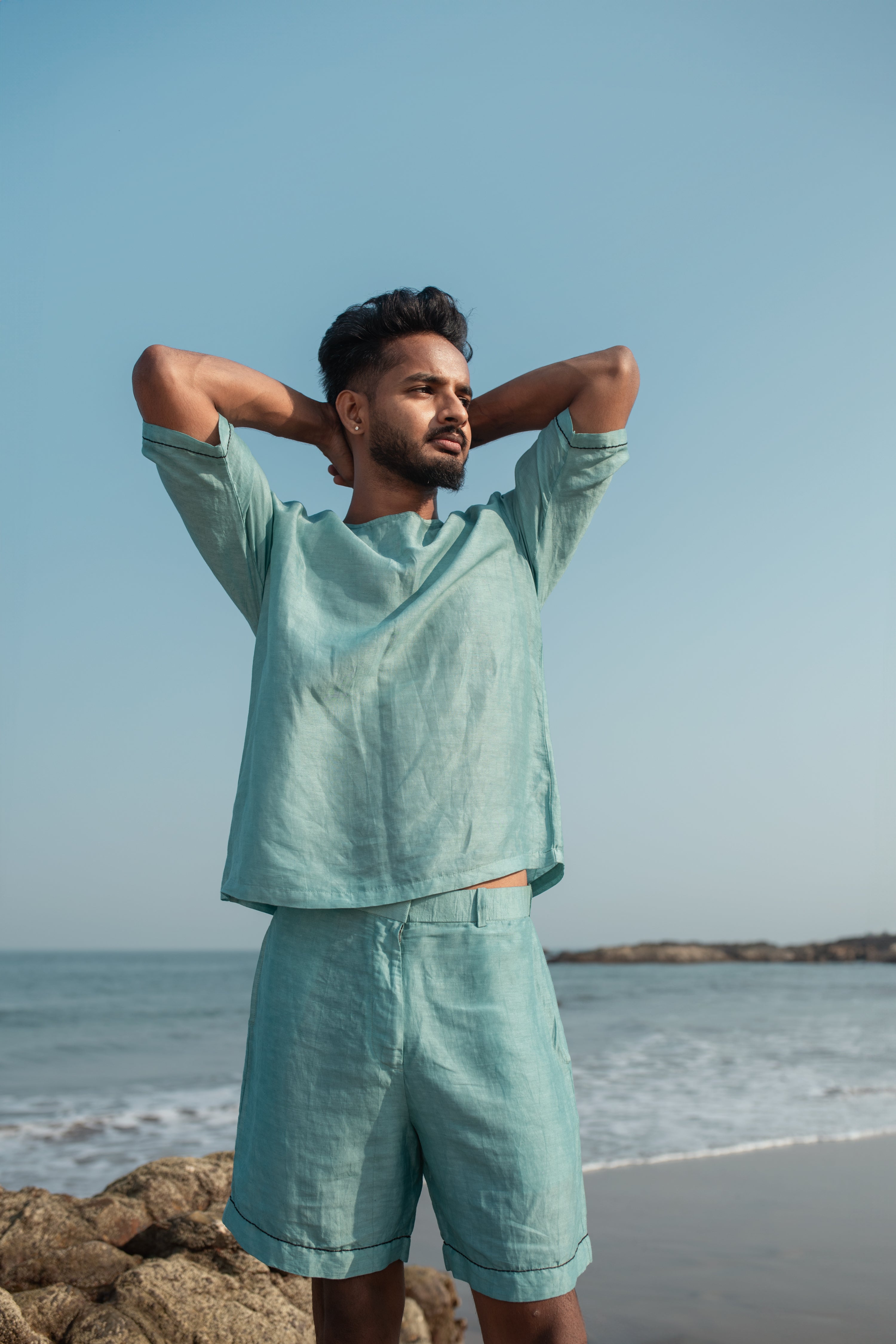 Quickshop Crafted from lightweight linen in a soft powder blue. The streamlined design...