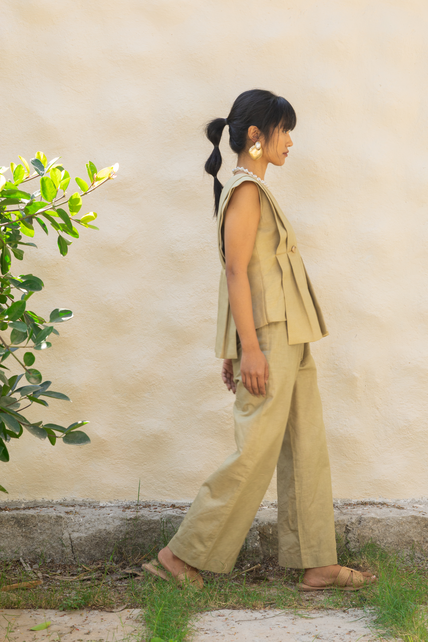 Constructed in cotton khadi with a high-waisted, straight-leg silhouette.